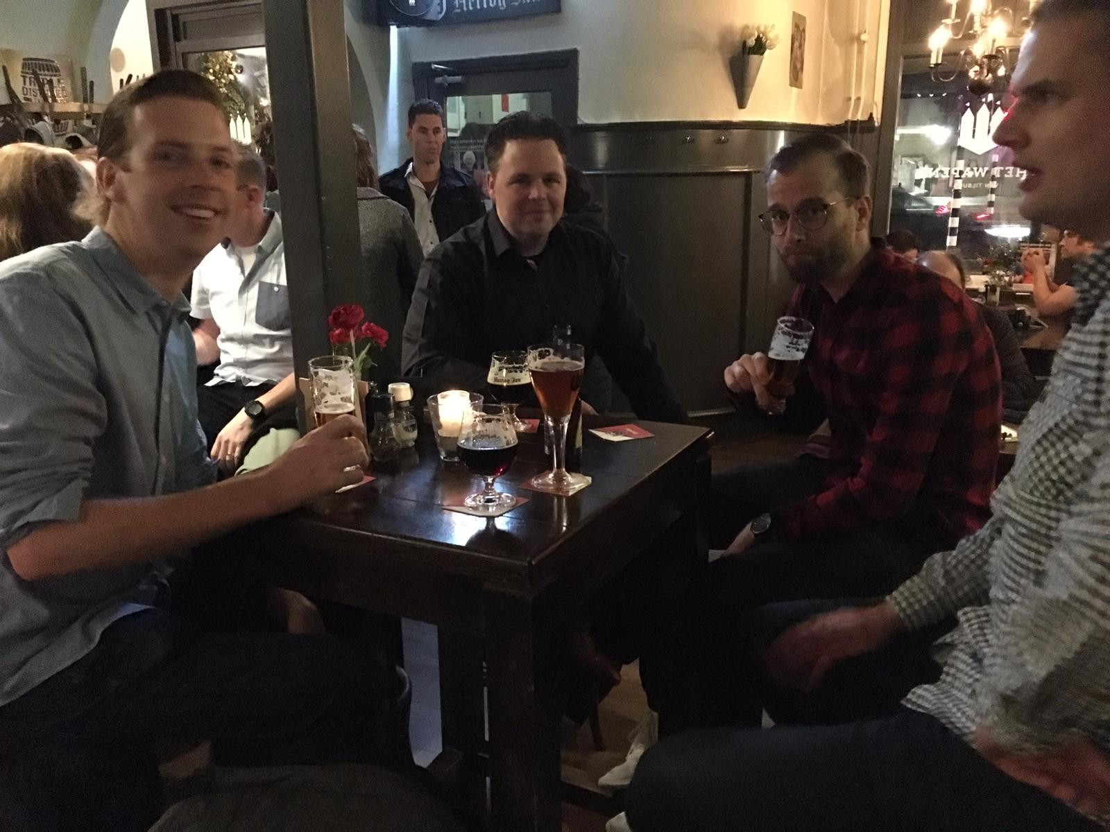 Na het eten werd al snel door enkele geopperd om nog even in Tilburg te blijven. Tim moest maandag weer op tijd werken, dus moest weer aan zijn driedaagse terugreis beginnen. Sander kan in deze periode zijn slaap wel gebruiken dus was ook alweer snel verdwenen. Wat overbleef dook al snel de eerste de beste kroeg in die ze tegen kwamen. Gelukkig was de eerste kroeg een duistere tent vol met oude single vrouwen en nog oudere mannen. Er werd lekker gedanst door de bevallige vrouwen, maar wij als volbloed jongemannen voelden ons er al snel ongemakkelijk bij. We wachten nog even op het rondje met gratis flugel, want als iets kansloos schreeuwt, is het wel ouderwets flugel drinken. Hierna verplaatsten we ons naar de buren. Dit zag er gelukkig allemaal een heel stuk beter uit. De leeftijd ging een behoorlijk stuk naar beneden en we konden alle vier weer ademhalen dat we niet door een MILF waren betast. Na wat biertjes klonk er al snel het bekende “shots shots shots” uit de mond van Rik, dus gingen we er maar helemaal vol voor. Niet snel daarna moesten we toch echt Tilburg gaan verlaten om nog met het openbaar vervoer thuis te kunnen komen. De trein werd nog netjes gehaald, helaas heeft Mike alleen nog maar kijk op het leven in de grote stad en was hij even vergeten dat er ook nog wat heren richting Best moesten. Maar met de intercity eenmaal in Eindhoven aangekomen, stonden er gelukkig taxi’s klaar om Erik en Rik richting Best terug te vervoeren.