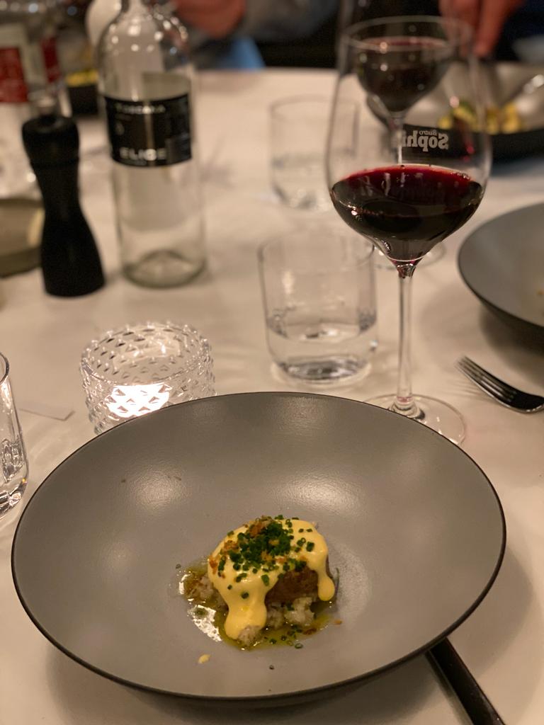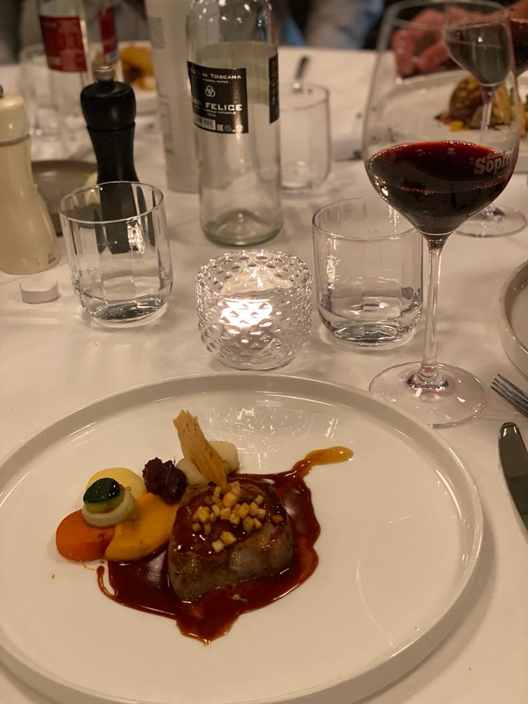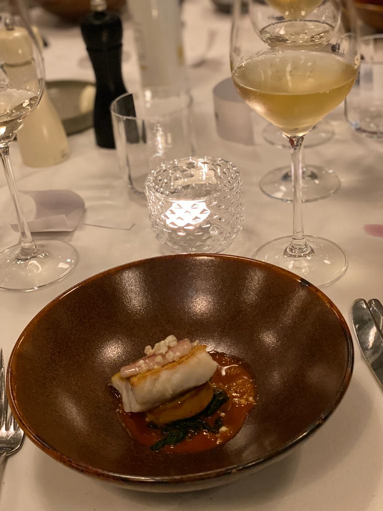 Maar bovenal was het eten weer eens heerlijk, van de amuses tot het kaasplankje aan het einde. Het eten was echt weer de ster van de avond. De gerechten kwamen allemaal in een lekker tempo uit de keuken en de wijnen volgen elke keer direct. Helaas is onze ober een keertje te snel en krijgen we een rode wijn geserveerd die bij het volgende gerecht hoort. De ober probeert zich nog te redden door de glazen snel op te halen.